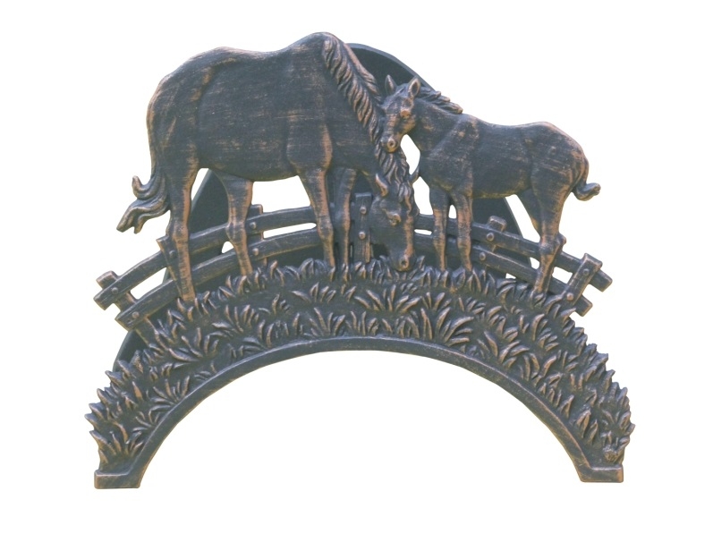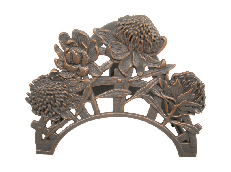 33cm tallx38cm wide, Cast Aluminum gets the long-wearing bronze powder coat finish with hand painted gold highlights..