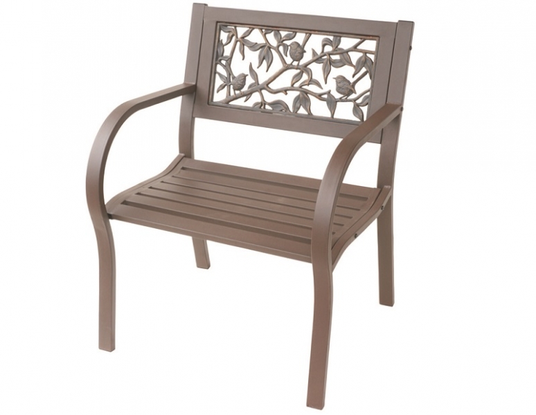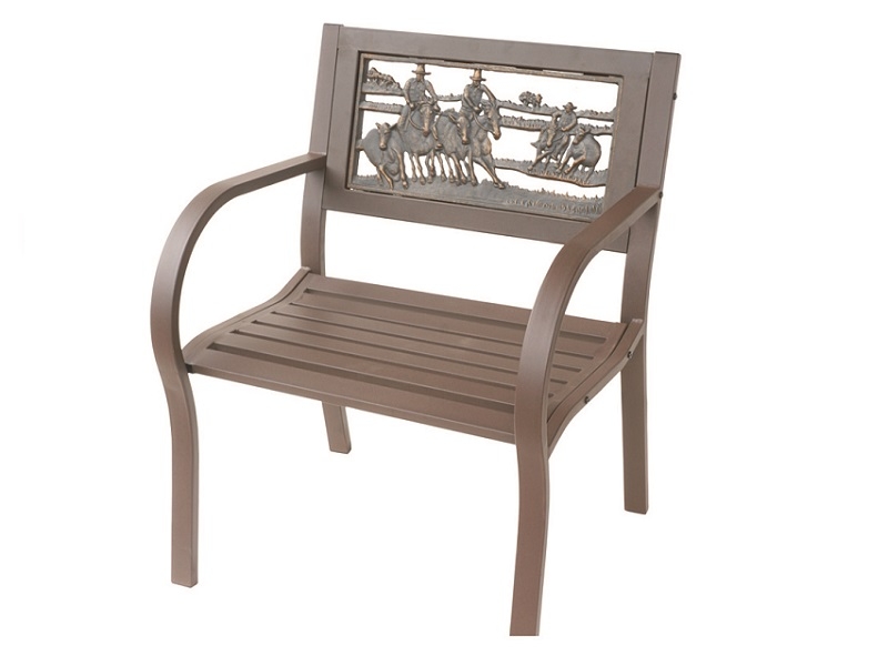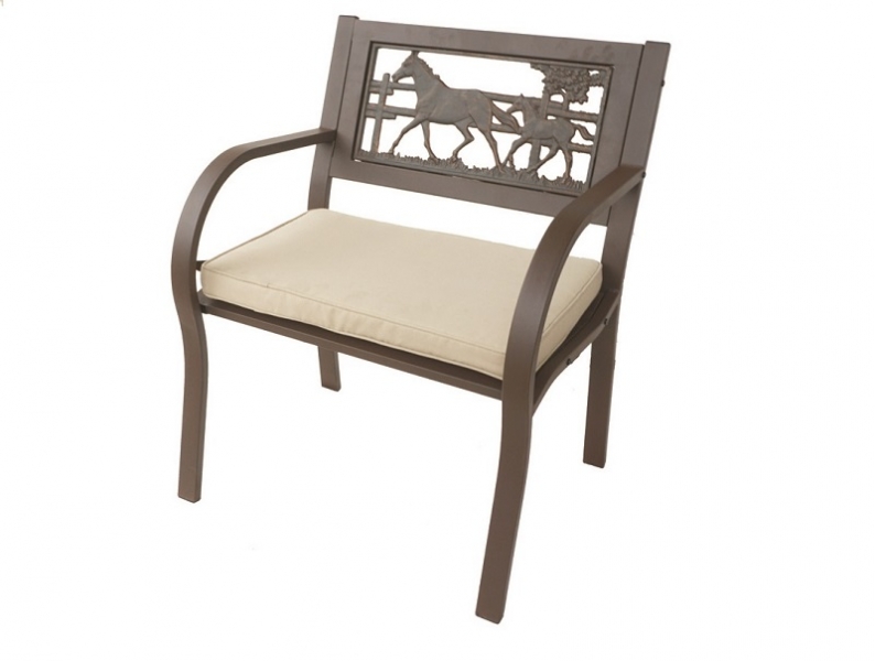 All metal gets the tough long-wearing dark brown & bronze powder coat finish with hand painted gold highlights. Specifications:64cm widex86.5cm tallx48.5cm deep, Seat height:39.4cm, Seat Weight:15kg. Capacity:230kg. Premium Cushion(optional):water-repellent, fade-resistant Heavy-Duty polyster+27#(27kg/m3)density foam.