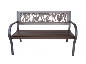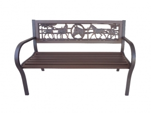 2-tone color scheme of dark brown seat and backrest frame combined with our traditional bronze side frames and art castings. This recreates the look of the traditional wood salt garden bench without the maintenance. Specifications:127cm widex81cm tallx48.5cm deep,Seat height:39.4cm Weight:21kg, Capacity:230kg.