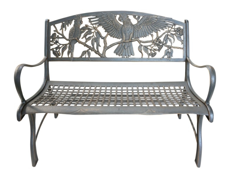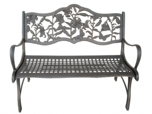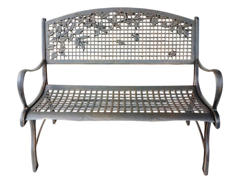• Solid cast iron construction gets the long-wearing bronze powder coat finish with hand painted gold highlights. Specifications:100.5cm widex91.5cm tallx68.6cm deep, Seat height:40.6cm, Seat Weight:38kg, Capacity:270kg(2persons). .